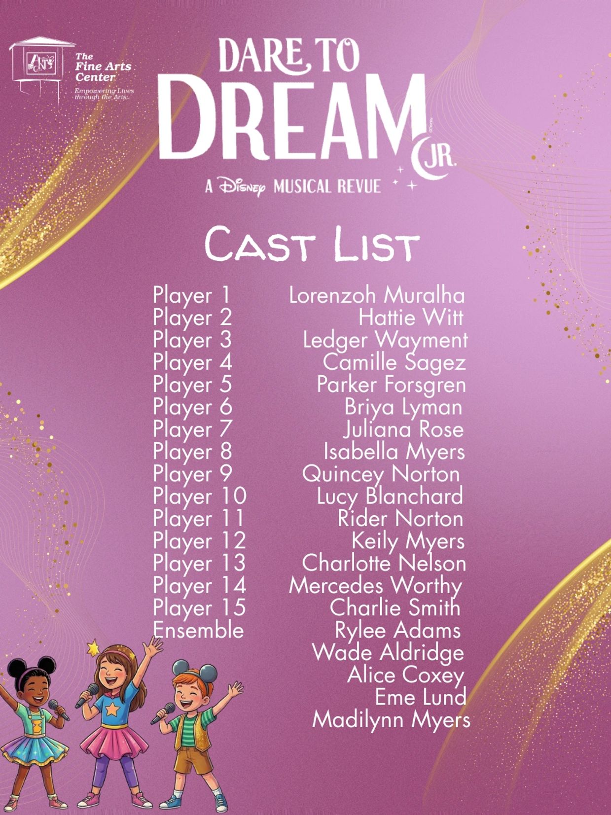 We are thrilled to officially announce the cast for our upcoming production of Dare to Dream Jr.!